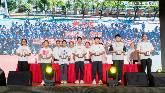 学院还为近期过生日的2024级新生准备了一份特别的惊喜,典礼现场,学院领导、老师为学生代表送上了精美的生日礼物。