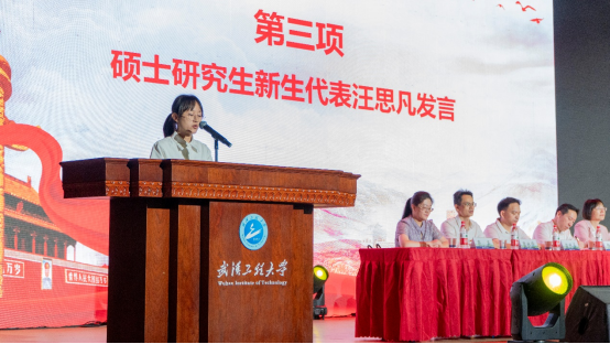 2024级药剂学硕士研究生新生代表汪思凡发言,她表示,在接下来的大学生活中,将崇德修身,践行学术诚信,保持谦虚谨慎、不骄不躁的心态,勇攀科学高峰;坚定选择,专注当下,将自己的时间与精力投入到研究生学习中,提升自身的综合素养。
