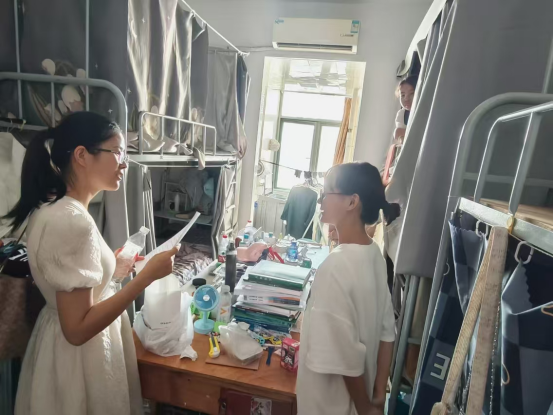 巡查工作小组重点巡查学生宿舍卫生、安全以及走廊堆积杂物等情况。“你们宿舍几个人?”“家是哪里的?”“学习生活有没有什么困难?”“良好的宿舍卫生环境能让同学们感到愉悦和放松,有助于提高学习生活质量,同学们要共同营造文明、温馨的宿舍环境”,党委学生工作部部长、第一组宿舍巡查组组长严敏一行来到学生宿舍,详细询问同学们学习、生活的情况,嘱咐学生要注重宿舍卫生、消防安全、用电安全。