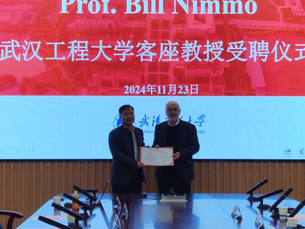 学术报告正式开始前,学校党委人才工作办公室主任季家友代表学校为Bill Nimmo教授颁发客座教授聘书,邀请Bill Nimmo教授为我校的学科建设和学校发展建言献策。