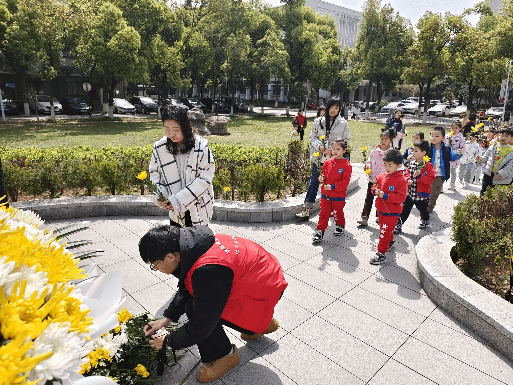 在场师生依次向许志伟雕像献花,表达对许志伟的深切缅怀和崇高敬意。