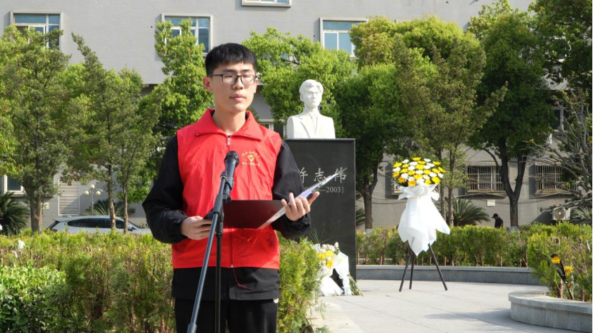 学生代表赖闽韬分享了自己在许志伟志愿服务队的点滴,他倡议同学们要以更坚定的信念、更扎实的行动,让许志伟精神在服务国家、奉献社会的实践中绽放新的光芒!