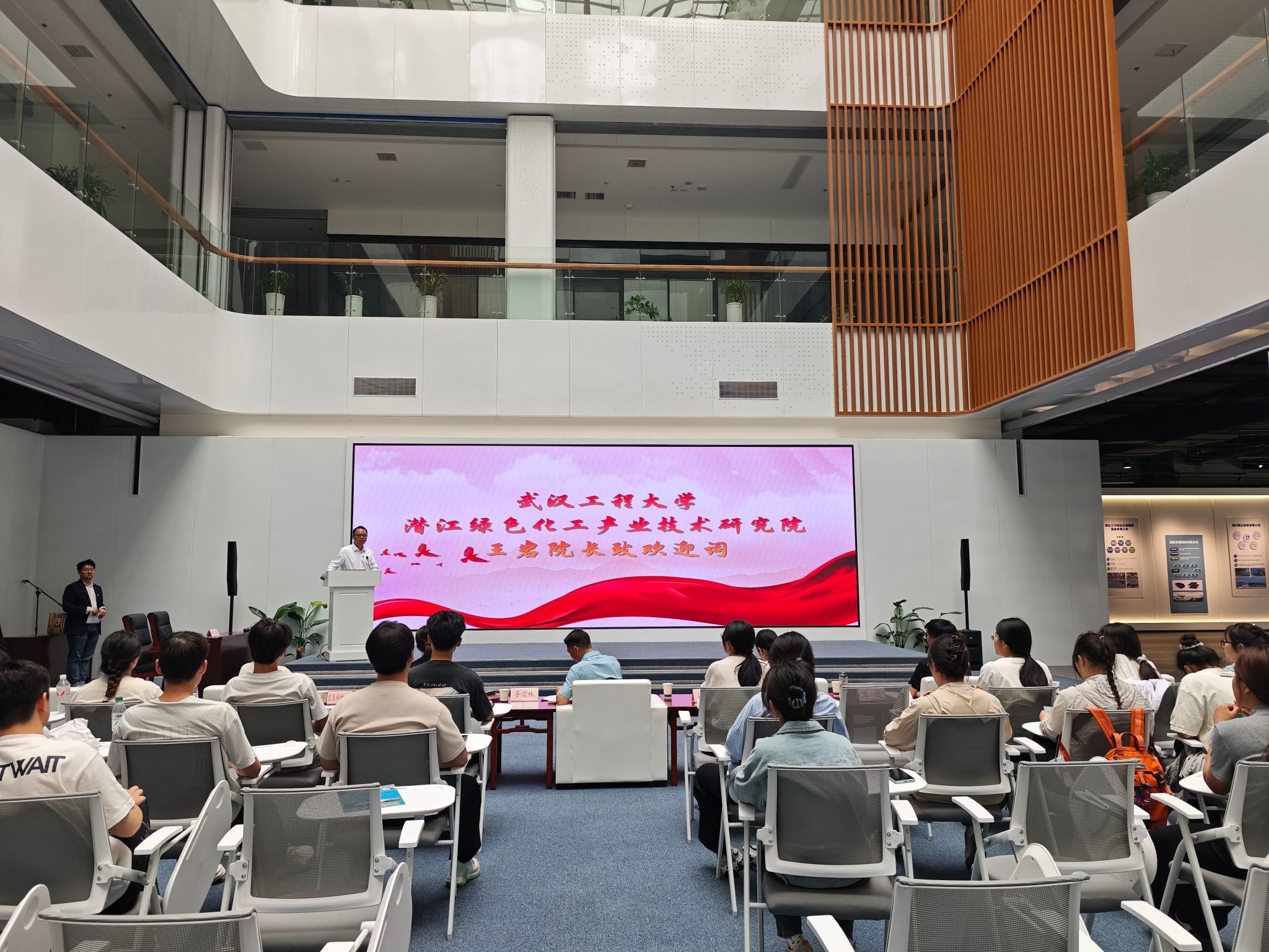 全体师生前往潜江市科创中心参观学习,陈平院长为同学们讲解了科创中心产学研成果转化优秀案例。让同学们深刻认识到了产学研结合的重要性,并立志要立足产业需求,做“能走出实验室的科研”。