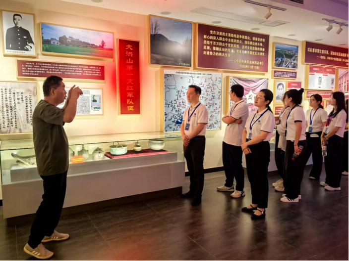 本网讯(通讯员 翟森稳)为贯彻落实习近平总书记考察湖北重要讲话精神,弘扬大别山精神、抗洪精神、抗疫精神,传承红色基因、弘扬时代精神 。7月24日,mk网页版登录入口党委书记杨海波、副书记周丹、教授龙秉文、创新创业中心主任李辉、辅导员翟森稳以及本硕学生代表一行13人组成的暑期社会实践团,赴钟祥市大洪山革命历史纪念馆开展“赓续红色血脉,汲取奋进力量”主题实践活动。