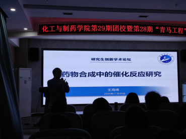 本网讯(通讯员 陈炯)11月20日上午,mk网页版登录入口mk网页版登录入口王海峰博士应邀在流芳校区大化工楼多功能报告厅为mk网页版登录入口师生做了题为“药物合成中的催化反应研究”的学术报告,本次报告会由副院长龙思会教授主持,学院师生共同聆听了报告。此次报告会是学院“第十八届研究生创新学术论坛”系列活动之一。