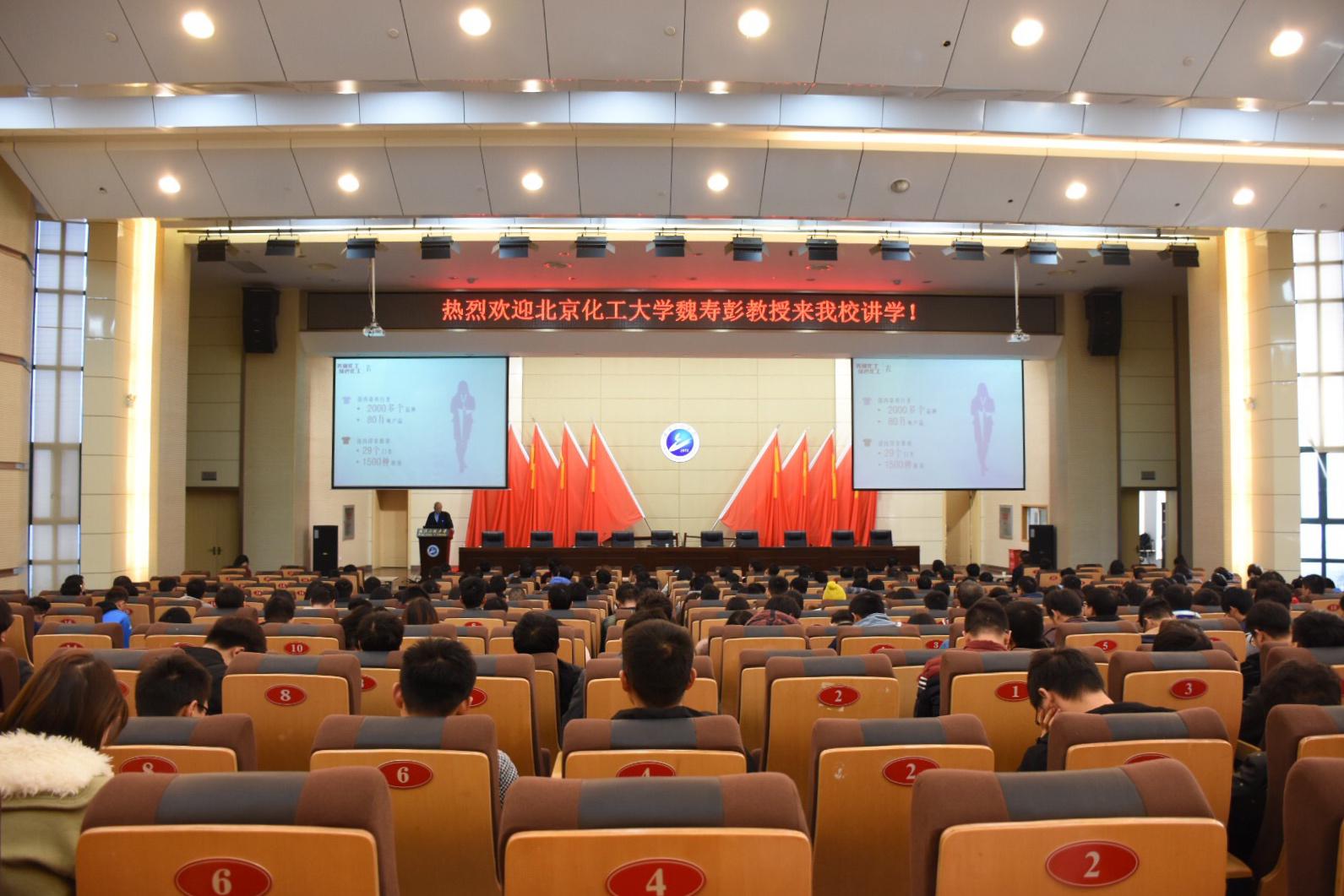 11月23日上午,北京化工大学魏寿彭教授应邀为我校师生在流芳校区四教多功能报告厅作主题为“美丽化工与绿色化工”的精彩讲座,报告由mk网页版登录入口党委副书记田勇主持,mk网页版登录入口400余名师生聆听了报告。