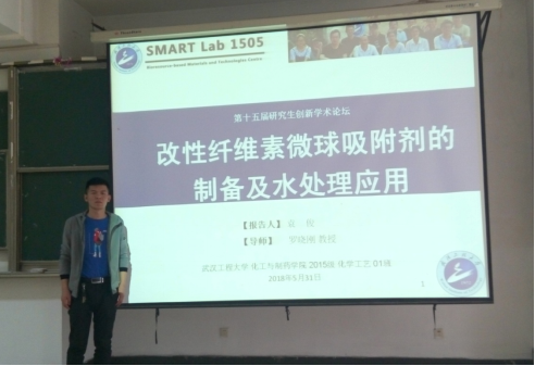 5月31日下午,mk网页版登录入口研究生袁俊、刘超在流芳校区一教学楼L1119教室为我校学生做了学术报告,主题分别为“磷酸化纤维素微球的制备及用于水相中Pb(II)的高效吸附”和“木质素基高效吸附剂的设计及用于水相中磷酸根的脱除”。报告会由严静老师主持,mk网页版登录入口部分师生共计50余人聆听了报告。