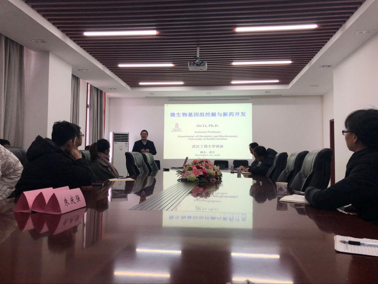 本网讯(通讯员 严静)12月12日上午,University of south Carolina李杰博士应外事处和mk网页版登录入口的邀请在化工大楼605会议室为mk网页版登录入口师生做主题为“微生物基因组挖掘与新药开发”的学术报告。报告会由副院长龙思会主持,学院师生80余人参加了本场学术报告。
