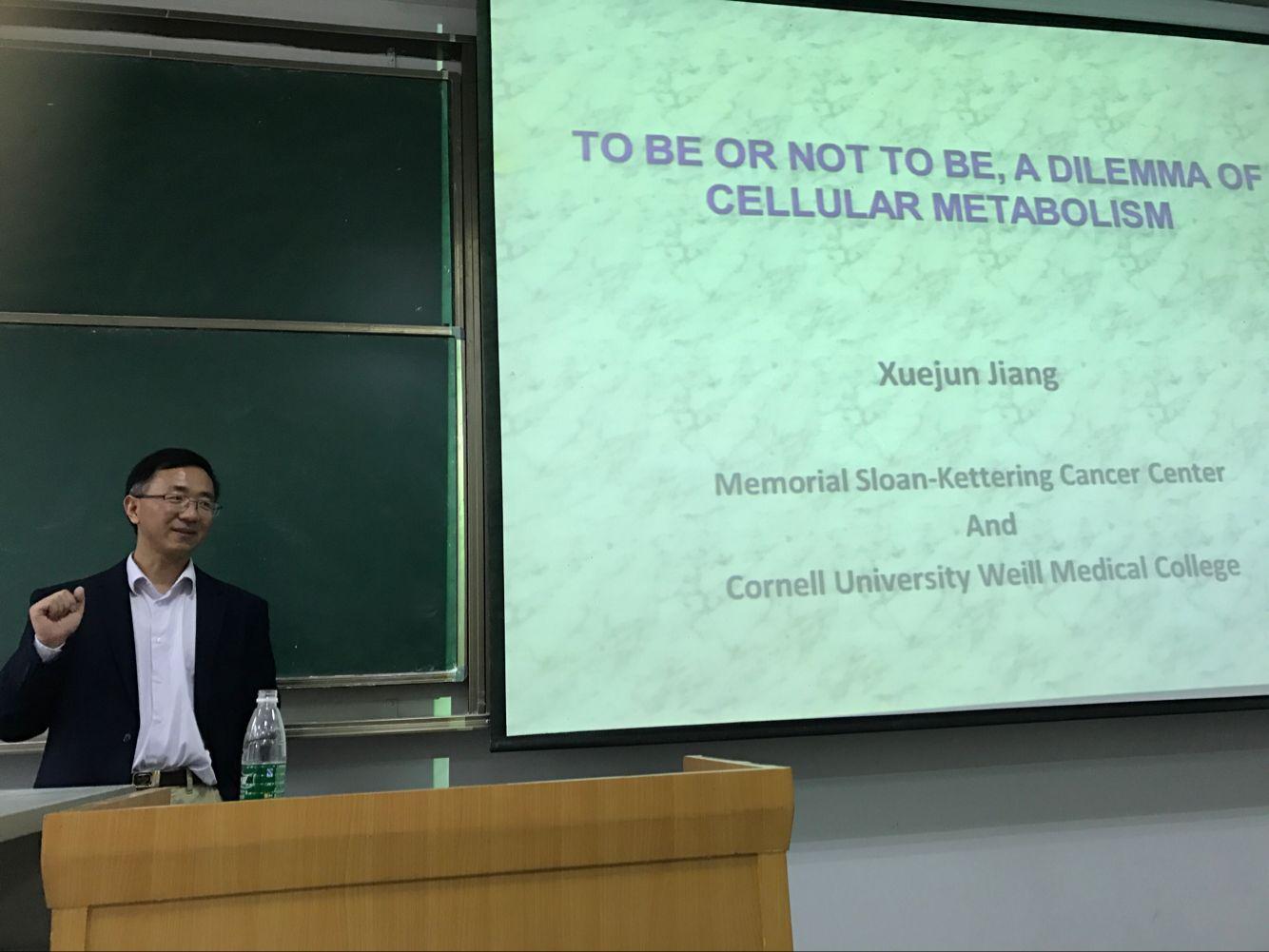 4月20日下午,应外事处、mk网页版登录入口和绿色化工过程教育部重点实验室的邀请,美国康奈尔大学医学院和斯隆-凯特琳癌症中心姜学军教授来我校进行访问讲学,在流芳校区L4002为我校师生140余人作了题为《To be or not to be, a dilemma of cellular metabolism(细胞代谢的困惑)》的学术讲座。讲座由mk网页版登录入口院长喻发全教授主持。