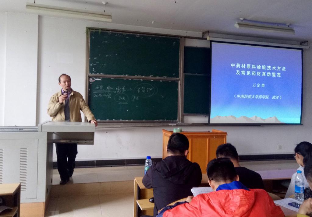 4月27日上午,应我校mk网页版登录入口的邀请,中南民族大学药学院万定荣教授在流芳校区一教楼L1207教室做了一场题为“中药材原料检验技术方法及常见药材真伪鉴定”的学术报告。