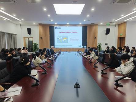 Bill教授以"Sustainable Power Technology -Future Options”为题,针对全球能源发展趋势,分析了世界主要能源和化石燃料大量消耗原因,在煤炭清洁和二氧化碳减排等方面提出独到见解。他分析了中国、美国、欧洲的能源利用情况以及各国处理二氧化碳的方法,重点介绍了英国减排二氧化碳的途径。作为Elsevier期刊《FUEL》主编,Bill教授介绍了该期刊化石能源及可再生能源和清洁能源等主题的论文刊录范围,分享了期刊最近五年的论文收录情况。Bill教授与现场师生就中试研究、二氧化碳捕获和光伏发电等领域进行了深入讨论,激励年轻学者在科研道路上不断进步。