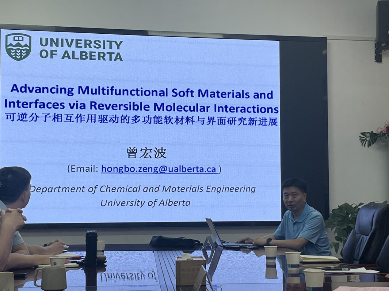 应课题组邀请,加拿大阿尔伯塔大学曾宏波院士于7月3日上午莅临mk网页版登录入口mk网页版登录入口进行学术讲学----《Advancing Multifunctional Soft Materials and Interface via Reversible Molecular Interactions》(可逆分子相互作用驱动的多功能软材料与界面研究新进展)。
